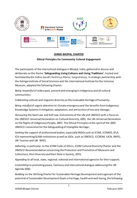IGRMS BHOPAL CHARTER Ethical Principles for Community Cultural Engagement