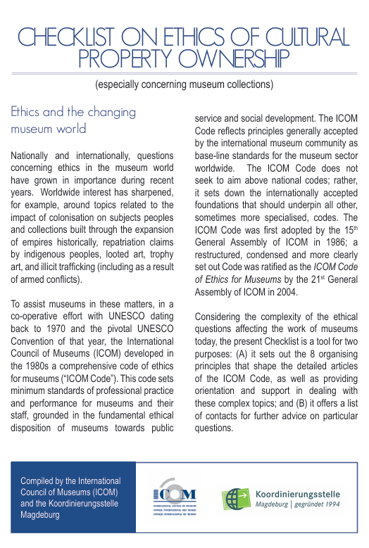 Checklist on ethics of Cultural property ownership